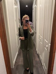 These pants fit nicely and went well with the matching suit jacket, they were the right length for tall girls with lower heels. Im here for the green suiting revolution!