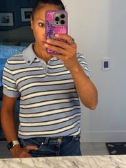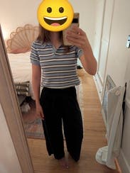 love this knit polo! it’s not too cropped like a lot of others can be and sizing up was perfect for work