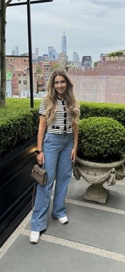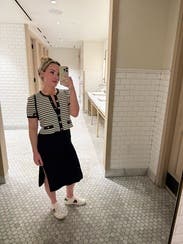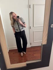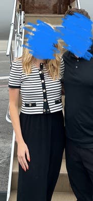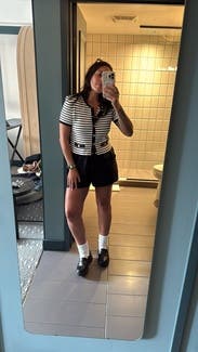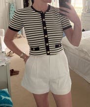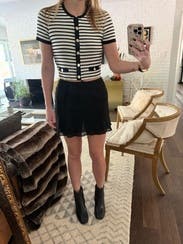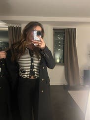 Team RTR Review: I wore this multiple times while I had it during this shipment! Loved it with a black mini as pictured, but also paired it with dark straight leg denim with ballet flats and it was so cute for a daytime event. It definitely fits loose/boxy, but I think it’s supposed to! I love her preppy and chic this looked with every outfit.