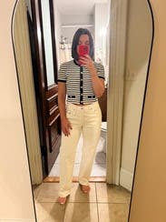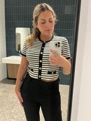 Loved this cropped look with high-waisted jeans. Received several compliments!