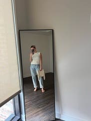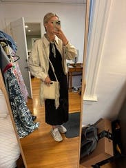 I thought I would love this and had every intention to buy it from the rental. I’ve been eyeballing this Maje style for a couple of months. But when I got it, I was underwhelmed. It is pretty narrow inside and not as roomy as I expected. Also, it just didn’t look as special as I thought. Fine for a rental though. I used a couple of times on the weekend with jeans and a tank and for work as pictured in my review.