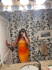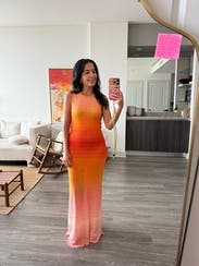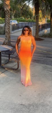 This dress is amazing!! The lightest knit dress I’ve ever tried on! Truly hugs you in all of the right spots and feels lightweight for summer nights. Received so many compliments on this dress!