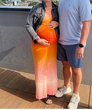 Loved this one! So comfortable and stretchy. Wore 7 months pregnant and went one size up but probably didn’t need to. Highly recommend and would rent again!