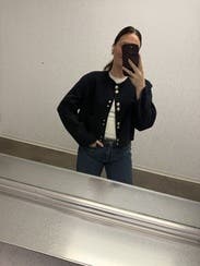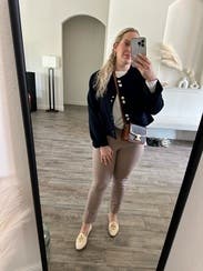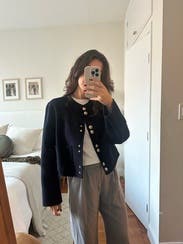 Absolutely loved this jacket and got so many complements on it. I wish I could buy this but it's an expensive piece - and for good reason. The quality of this jacket is too good - the buttons, and jacket material. I wore this multiple times on my trip and styled it so many different ways. Felt so chic and timeless and wanted to keep it so bad!
