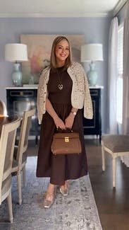 I love the crochet style of this jacket for a seasonal transition look (I’m in Louisiana where it’s still 90 degrees in late September), but the sleeves were a little big on me. I wore it draped over my shoulders instead, which I thought was cute (if not a little difficult to maintain all day). If you have skinny arms, I would consider sizing down.