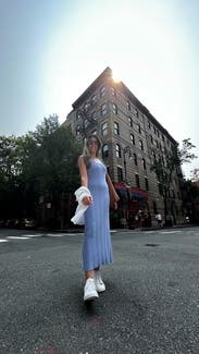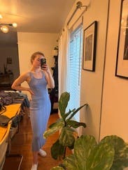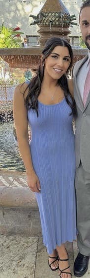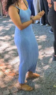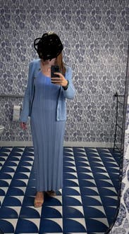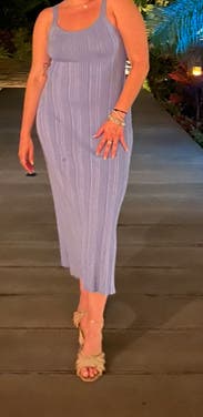 This dress understood the assignment. Stretchy but snatched, soft but structured. The color is a flirty periwinkle that pops in pics and makes your tan look like a golden hour filter. Wore it with black heels and simple jewelry, and 10/10, would wear it again. 👌🏻 Advice: Just toss on some shapewear if you want a more smooth finish, but honestly? She holds her own. Rent it. 💙💙💙💙