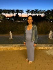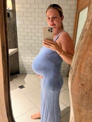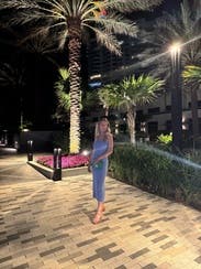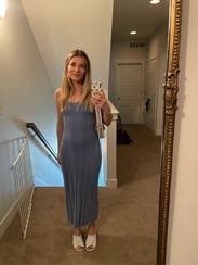 Loved the color of this dress!! Super stretchy and fit my 30 week belly! Couldn’t wear regular bra without straps showing though, but wore it anyways!
