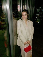 Was obsessed with this bag - perfect small size where i could fit my lipstick, phone, cards in it easily. Such a fun way to add color to any plain outfit.