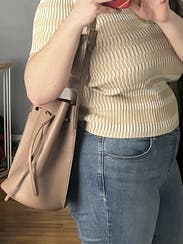 This was a great bag. Fit quite a bit, and I loved that it stood up on its own. Only downside for me was that it’s quite a bit cooler toned than the product photos show. It’s closer to the photo where it’s styled. It’s not a bad color at all, very neutral, but doesn’t go well with my closet.