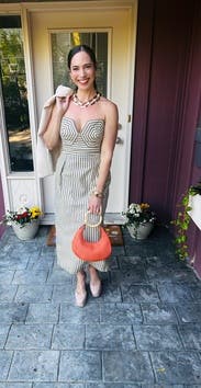 If you don’t like receiving compliments… I would recommend not wearing this dress 😉 Truly a piece of ART! It fit perfectly. I think no matter your bust size / you’ll have to pull it up a few times but I used fashion tape to hold it in place! Had no issues!