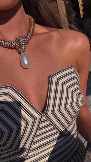 This is one of the best pieces I’ve ever rented - Mara Hoffman has made a comeback! I have an average sized chest and didn’t wear a bra - the top is structured so you don’t even need pasties. Plenty of room in the waist for eating and dancing. I’m a true 8 and HIGHLY recommend for the girlies who have curves.