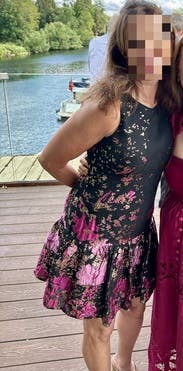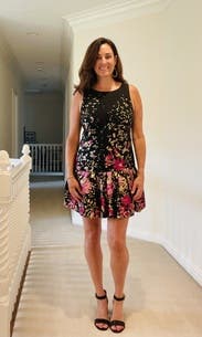 This dress was fun and flirty for a welcome party for a wedding. It fit great. Skimming the body and a great length for heels. Perfect for London in the summer and announced, "I am here to have fun"!