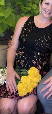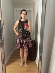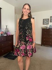 I loved this dress & highly recommend it. It was fun, festive & comfortable. The colors are way better in person-the gold metallic was my favorite & was a perfect touch for a holiday party. It was a bit snug in the chest but the bodice material is like a waffle weave & has some stretch. Shout out to the RTR staff for their superior customer service. I was notified in plenty of time that my first choice wasn't retuned in time to ship to me. They replaced it with 2 back ups including this winner.
