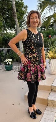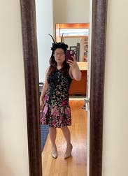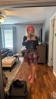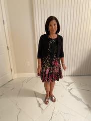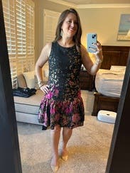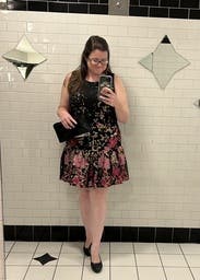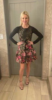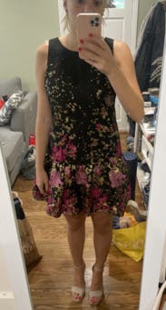 I wore this dress to Thanksgiving this year and received so many compliments! The perfect mix between dressy & fun! Super flattering and loved the flair on the bottom. Would definitely recommend!