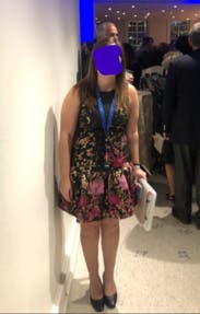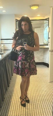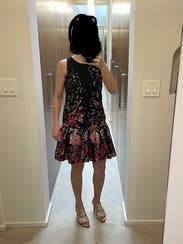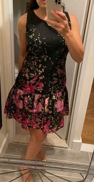 This is the second time I've rented a cocktail dress from Rent the Runway. It's a fantastic service! You can rent a fancy dress, rather than having to buy one that won't fit by the next year that you need it. [For reference, I'm 5'3.5", 148 lbs, 36B cup and I wore a size 12 but could have gone smaller] So, as for this dress, it was perfect for what I needed. Comfy, not too short (it was longer on me than I expected, just above my knees), pretty but modest (since I was wearing it for a work event, I didn't want anything with a revealing chest or slit up my thigh). A 10 would probably have been perfect but it wasn't available. I wore a 12 and it was roomy but just on the cusp of looking too big…I didn't have time to exchange it so it was fine. I will totally use Rent the Runway again…they're the best!