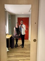 Perfect for a work gala. Exciting but not too flashy, and comfortable to wear while running around all night.