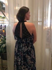 This dress has an effortlessness to it, to feel comfortable and elegant with little to no effort is a feat. This can be dressed up or down, so I wore with summer wedges and felt comfortable and appropriately dressed at the event. I received lots of compliments on the dress. What you don't see on the website is that detail of the fabric which is beautiful. However, I had to safety pin the neck closed because there was nothing for the clasps to hook into. Even at 5' 10" tall with wedges I was still stepping on it a little so keep that in mind when you order the length.