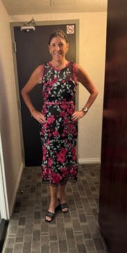 I’m a bit bigger on top so I sized up and I’m glad I did, I felt it was a little lose through the hips but that was ok to fit good on top. Very comfortable and easy to wear all night, lots of dancing!