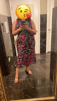 The wedding that I attended was “Garden Themed” which in my opinion was within the same vein as the Met Gala theme of “Garden of Time.” So even though I wasn’t invited to said Met Gala this year, this dress for my friend’s “Garden Themed” wedding was perfect! It was fun, and the green and pink floral colors on the dress really do pop out. It was super chic and comfortable to wear. Also I would say it’s perfect if the wedding is also somehow “ Bridgerton” themed as well.