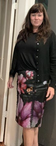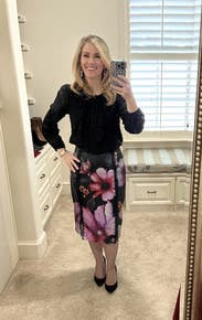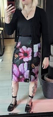 Love this skirt for work. Fits just a tiny bit large. Got lots of compliments.