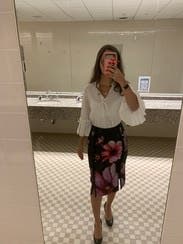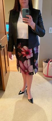Stunning! Received so many compliments on this skirt. Next time I'd size up for comfort wearing all day at work.