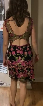 I LOVED this dress. I didn’t want to take it off but if you’re a curvy girl like me, then I suggest sizing up a size than your normal because it was tight in my hip area - even in my back up size. And in turn, the top of the dress was loose. But other than that, I absolutely adored this dress with all the flowers and the back of it was so beautiful!