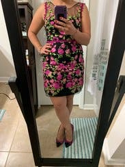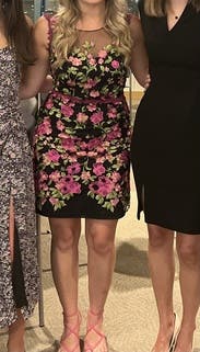 This dress was sent to me as a replacement and worked perfectly for a formal work event in Spring/Summer! I am an hourglass/pear-shaped 6/8 and the dress was form fitting without being too tight or too short. The embroidery and detailing is beautiful. Classy but still fun! I wore a sticky bra and the dress was quite comfortable.
