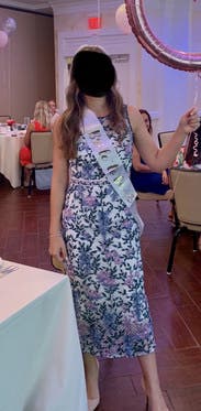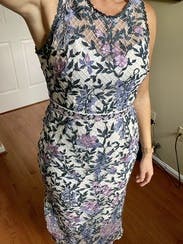 We wore my rentals for a rehearsal dinner and got a lot of compliments. Pretty details and delicate florals. If it were owned, it would need a couple alterations but overall it did the job.