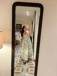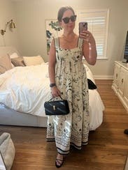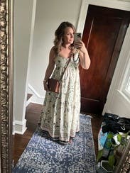 What a gorgeous maxi dress! It's am empire waist so size for your bust and the rest will fall into place. The pattern is giving elevated ren faire, but you can truly wear this almost anywhere. Got a ton of compliments!