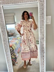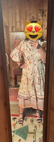 Wore this to an April baby shower and it was perfect. Made me think of white lotus season 2, lots of hidden symbols in the dress. Fit TTS everywhere but the chest - size up if you’re busty