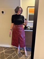 Really liked this skirt. Got a few compliments and felt confident in it. Pretty heavy material so it was nice on a cool fall night.