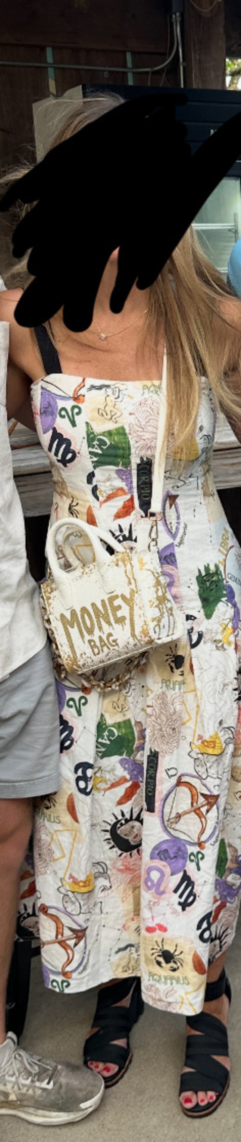 The Dixon Dress by Marie Oliver features a colorful geometric pattern, a square neckline, and a sleeveless design. Made from a blend of linen and cotton, it’s perfect for casual gatherings or daytime events.