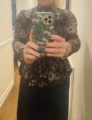 This Marie Oliver blouse features a high neck and cinched waist, creating a sophisticated silhouette with a bohemian flair. Pair it with tailored trousers for a chic, professional look.