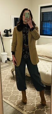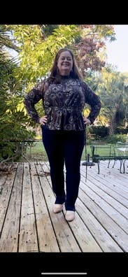 Enjoyed the color, structure and overall look of the blouse. It was flattering too! The fabric is a bit hot and unbreathable but still a good piece.