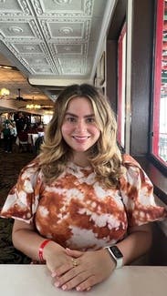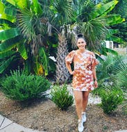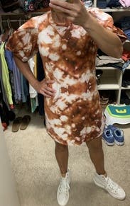 I am usually between a S/M. I ordered a small and it was too small so I didn’t wear it. The color leans more towards brown than orange. It’s cute but not my favorite.