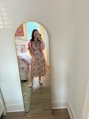 I really liked this! The fabric is a crisp cotton and the pattern is even prettier in person. It was a little tight in the stomach but that’s a me problem, it’s definitely a TTS size 2. I styled it with sneakers and a denim jacket to keep it casual as I ran errands. You could definitely dress it up with sandals and a flowy top.