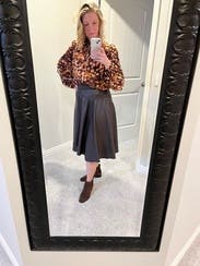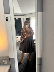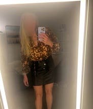 Paired with a faux leather skirt. Fit TTS and was comfortable.