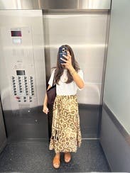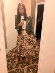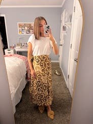 Loved the pattern and style! Just prob should’ve sized up since it’s a wrap skirt and my leg kept popping out…