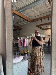 this skirt is so amazing! I wore it to thanksgiving and work while renting it so you can dress it up or dress it down. I love how it is adjustable with the tie function of the skirt!🖤🤎🤍