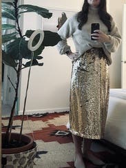 Wore this to a garden party with a Marni sweatshirt and a pair of No. 5 heeled clogs and absolutely loved it. The sequins are sort of "floppy" which I don't think is reflected in the photos. Great length and well made.