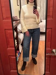 This sweater was so warm and cozy. The sleeves are long but you can cuff them and they stay cuffed. I would consider sizing up if I rented again for a more oversized look. I'm a size 8 in tops and rented a M.