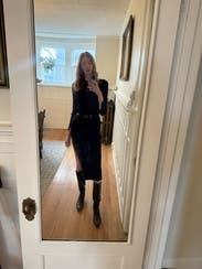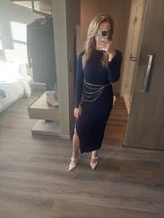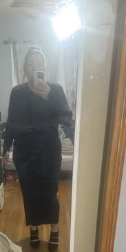 I loved this dress. The slit was a little high for a work event, but paired it with black nylons (but they ripped and I pivoted to white sneakers and it was still great).