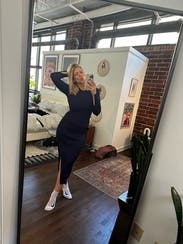 So this dress has a lot of stretch and it is a heavy sweater dress good for the winter. I think I could have gone down a size but it still looked nice. I am 5ft 8 so it was good length even with heels. It could be a lil less formal with some booties.