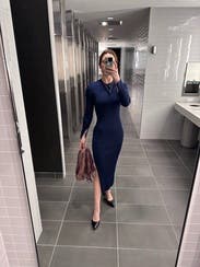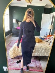 Loved this one for work. Form fitting but really flattering. Didnt realize there was a slit on the side!