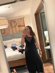 Only disappointed that apparently this is the only picture of me wearing this dress. Wore this to a (very) formal dinner (like… many courses) and couldn’t have loved this dress more. Comfortable and flattering. Did have to wear pasties though, bra was not an option.