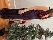 Loved this one. I had to buy a red tank top to wear underneath because the neckline was a bit too low for my taste, got it on sale at Express and it worked great. The little velvet touches made the dress feel a bit festive. Very unique
