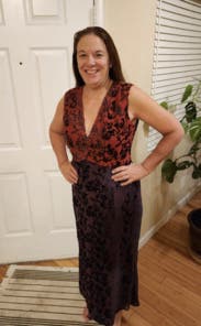 This dress was amazing. I got so many compliments. It was very comfortable, and I didn’t even need Spanx! I did pin the neckline a bit.