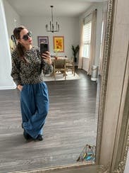 Casual option for coffee and errands. Could definitely dress it up if you wanted. This is like a cross between a sweatshirt and sweater - the softest material! Breathable, cozy, and not itchy.