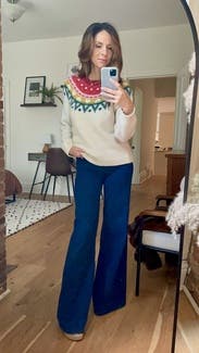 Really great for Christmas week. Nice and warm paired with jeans. The large was definitely oversized and I would have preferred the medium.