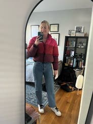 Gorgeous, lightweight puffer. I did find it ran large and easily could have sized down. The cropped fit was cute on, and it looked great with everything.